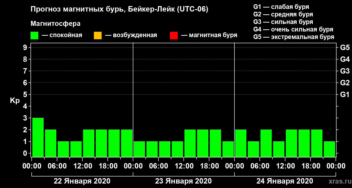 Прогноз магнитных бурь в Бейкер-Лейке на 22 января 2020 года