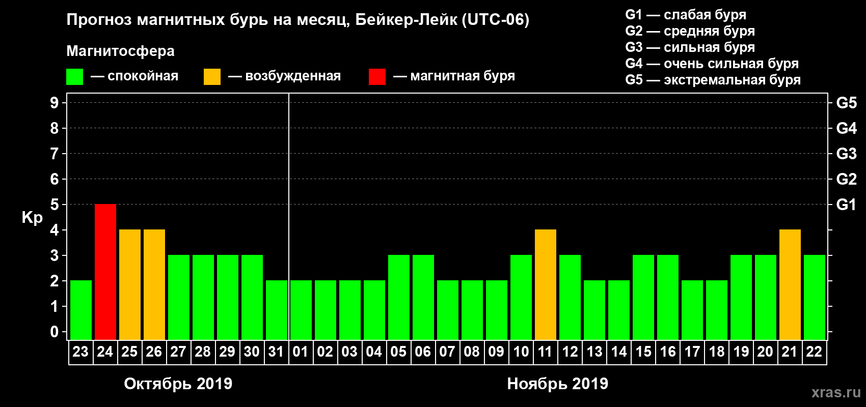 Прогноз магнитных бурь в Бейкер-Лейке — 23 октября 2019 года