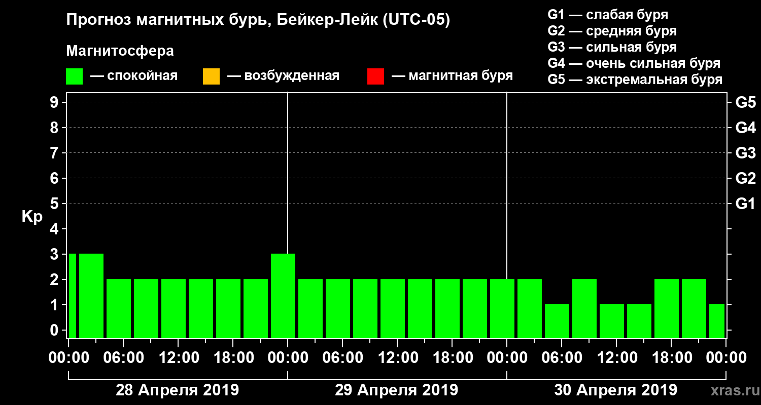 Прогноз магнитных бурь в Бейкер-Лейке — 28 апреля 2019 года