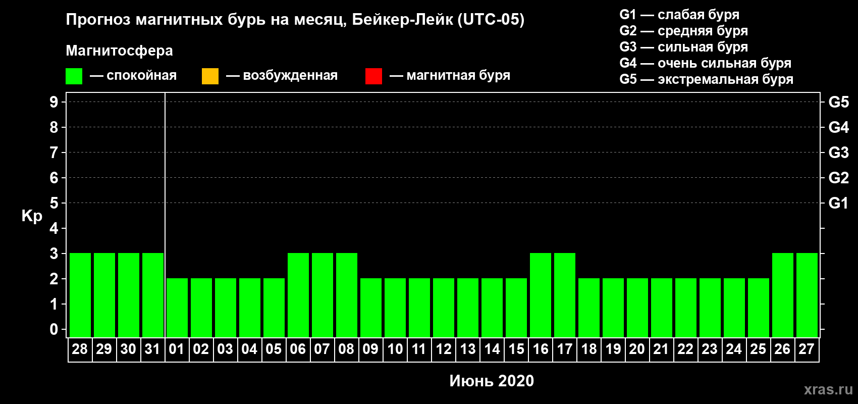 Прогноз магнитных бурь в Бейкер-Лейке — 28 мая 2020 года