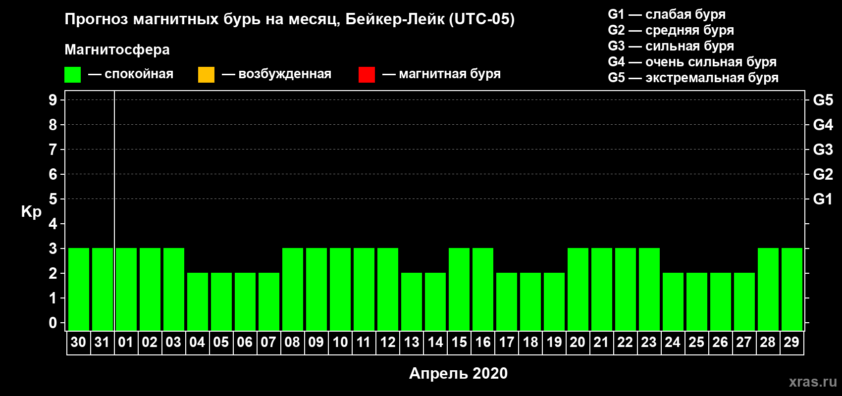 Прогноз магнитных бурь в Бейкер-Лейке — 30 марта 2020 года