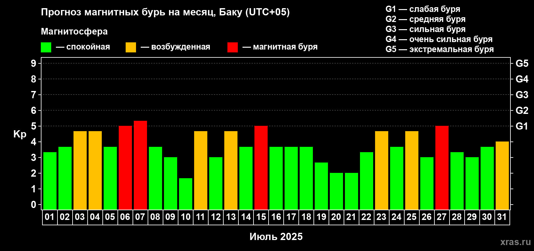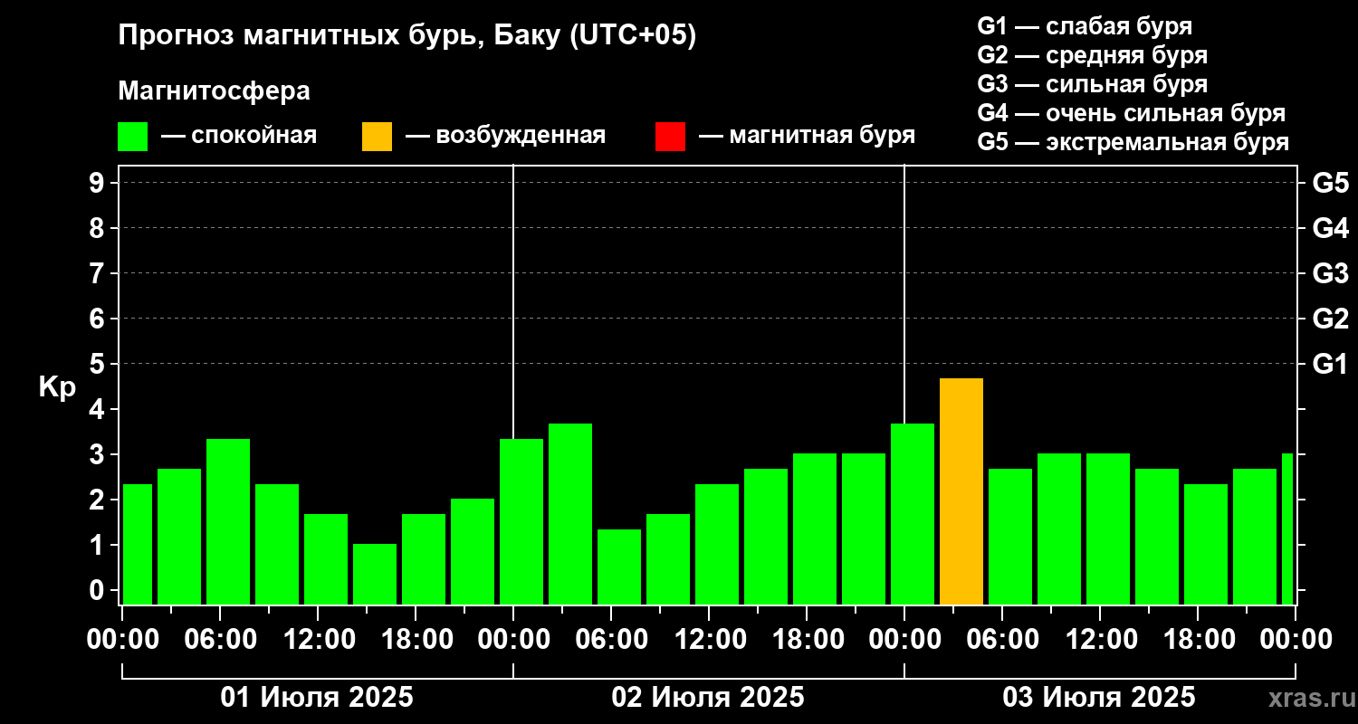 Прогноз магнитных бурь Баку — 1 июля 2025 года