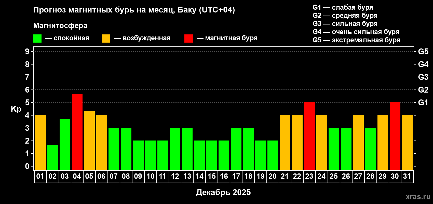 Прогноз магнитных бурь Баку — 1 декабря 2025 года