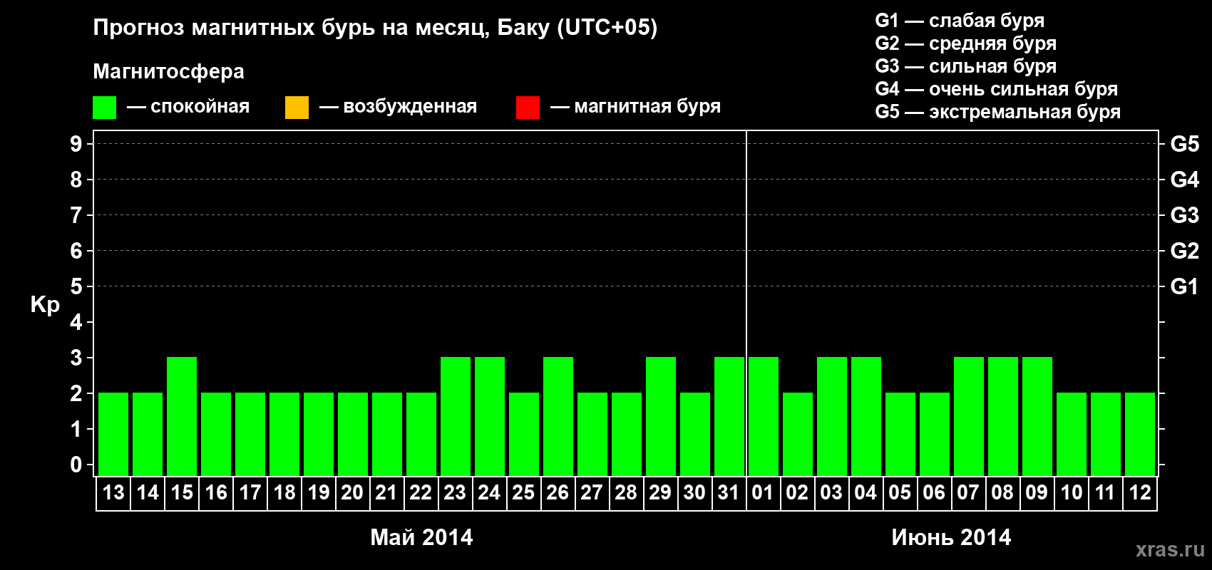 Прогноз магнитных бурь Баку — 13 мая 2014 года