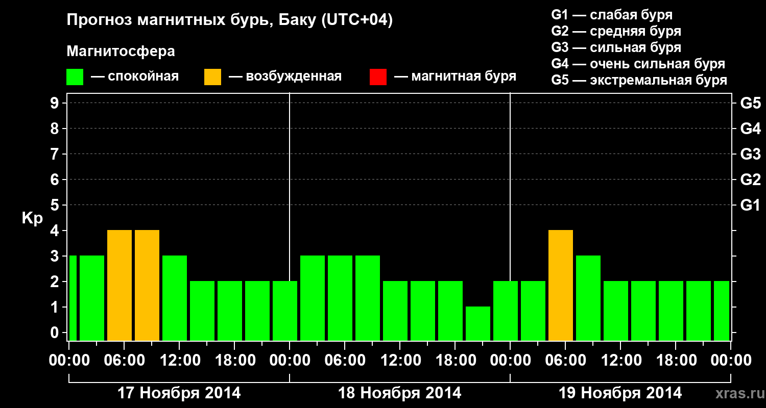 Прогноз магнитных бурь Баку — 17 ноября 2014 года