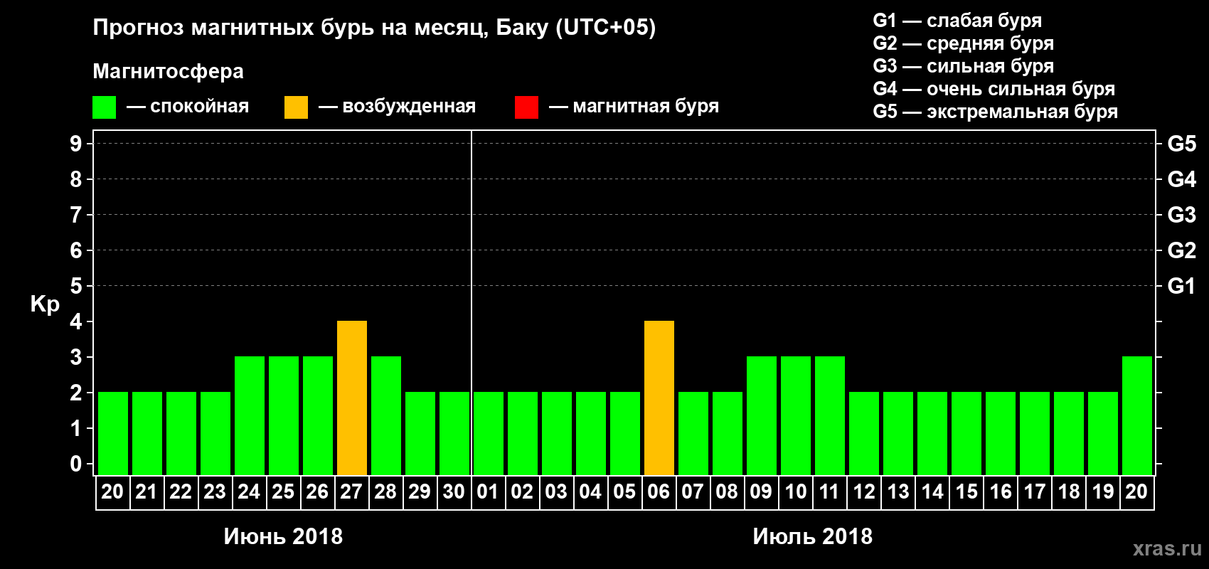 Прогноз магнитных бурь Баку — 20 июня 2018 года