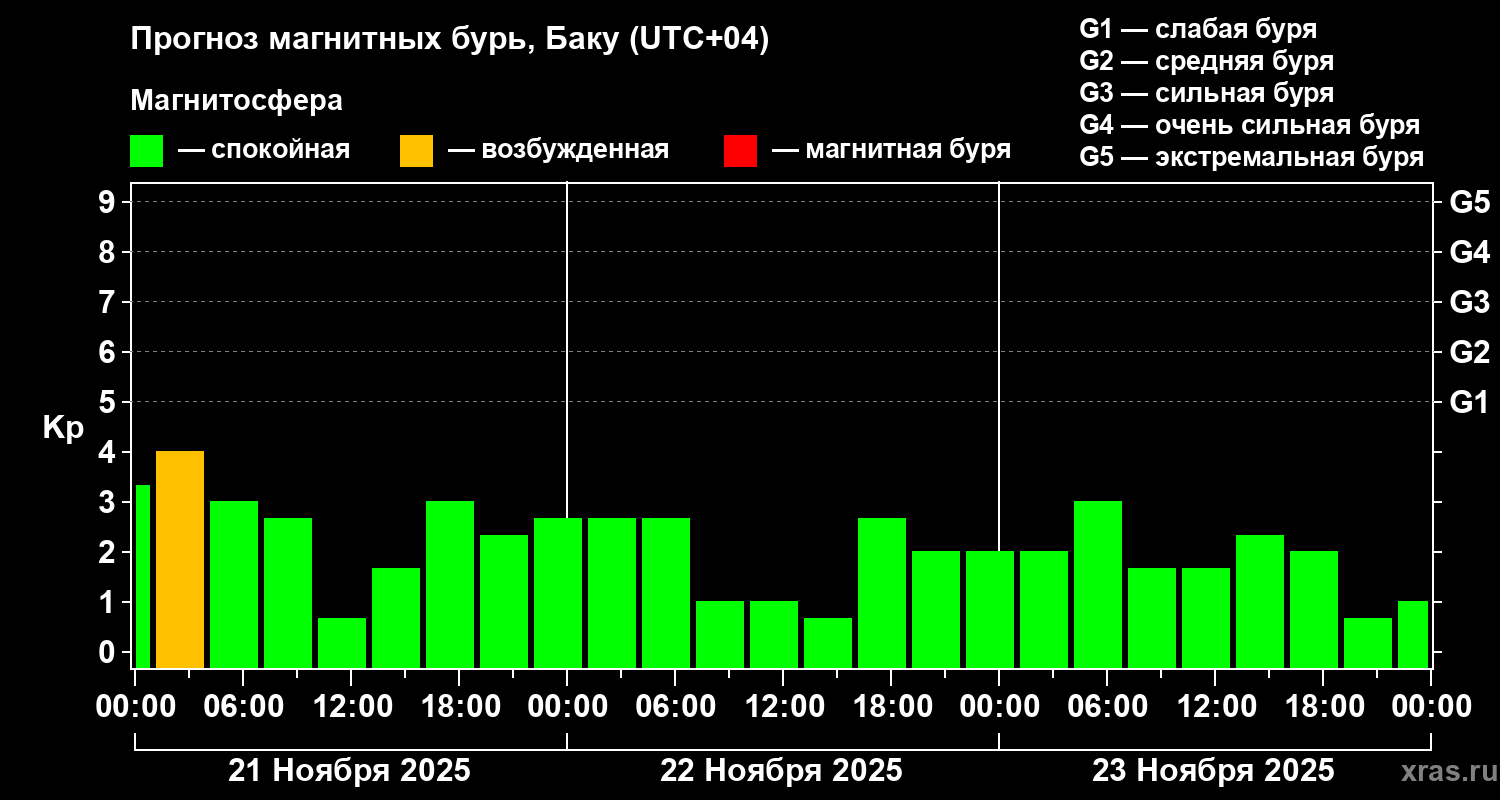 Прогноз магнитных бурь Баку — 21 ноября 2025 года