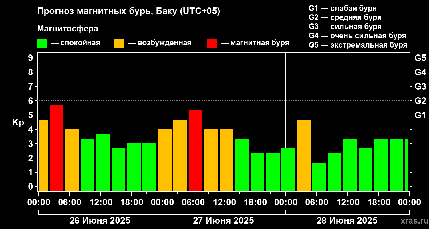 Прогноз магнитных бурь Баку на 26 июня 2025 года