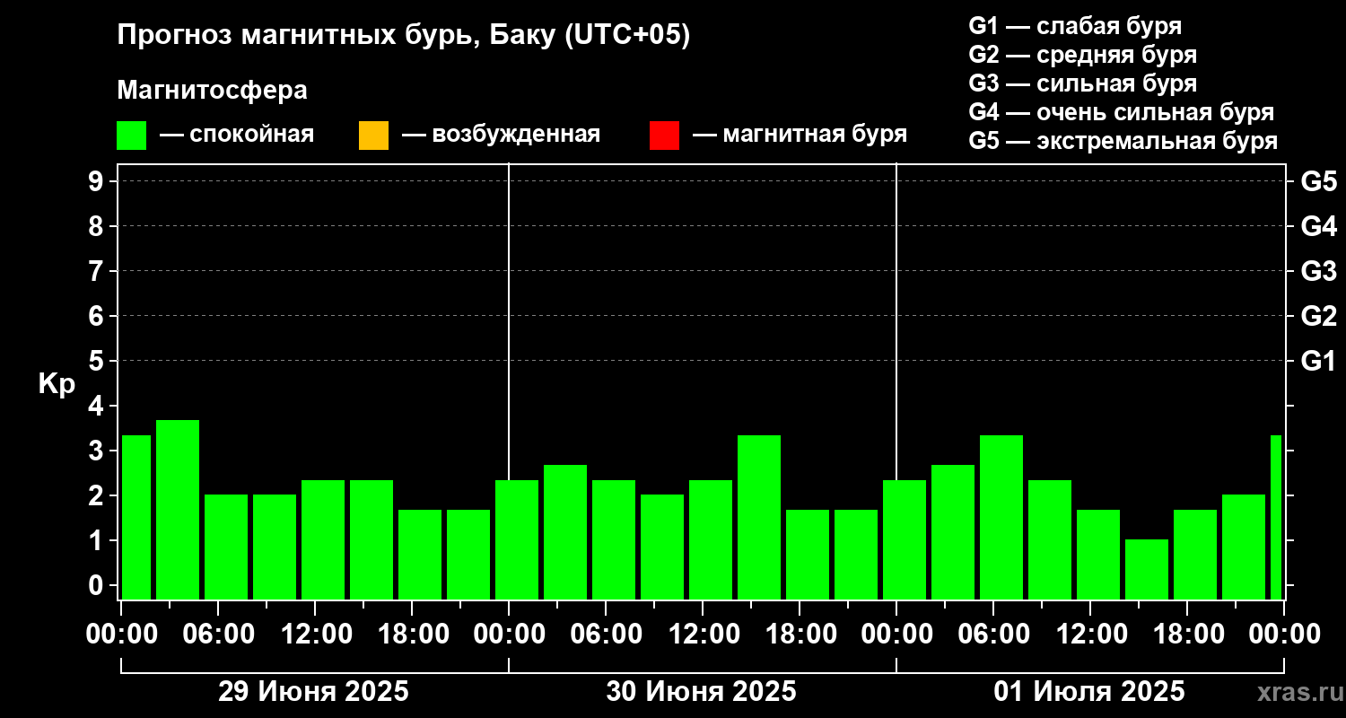 Прогноз магнитных бурь Баку — 29 июня 2025 года
