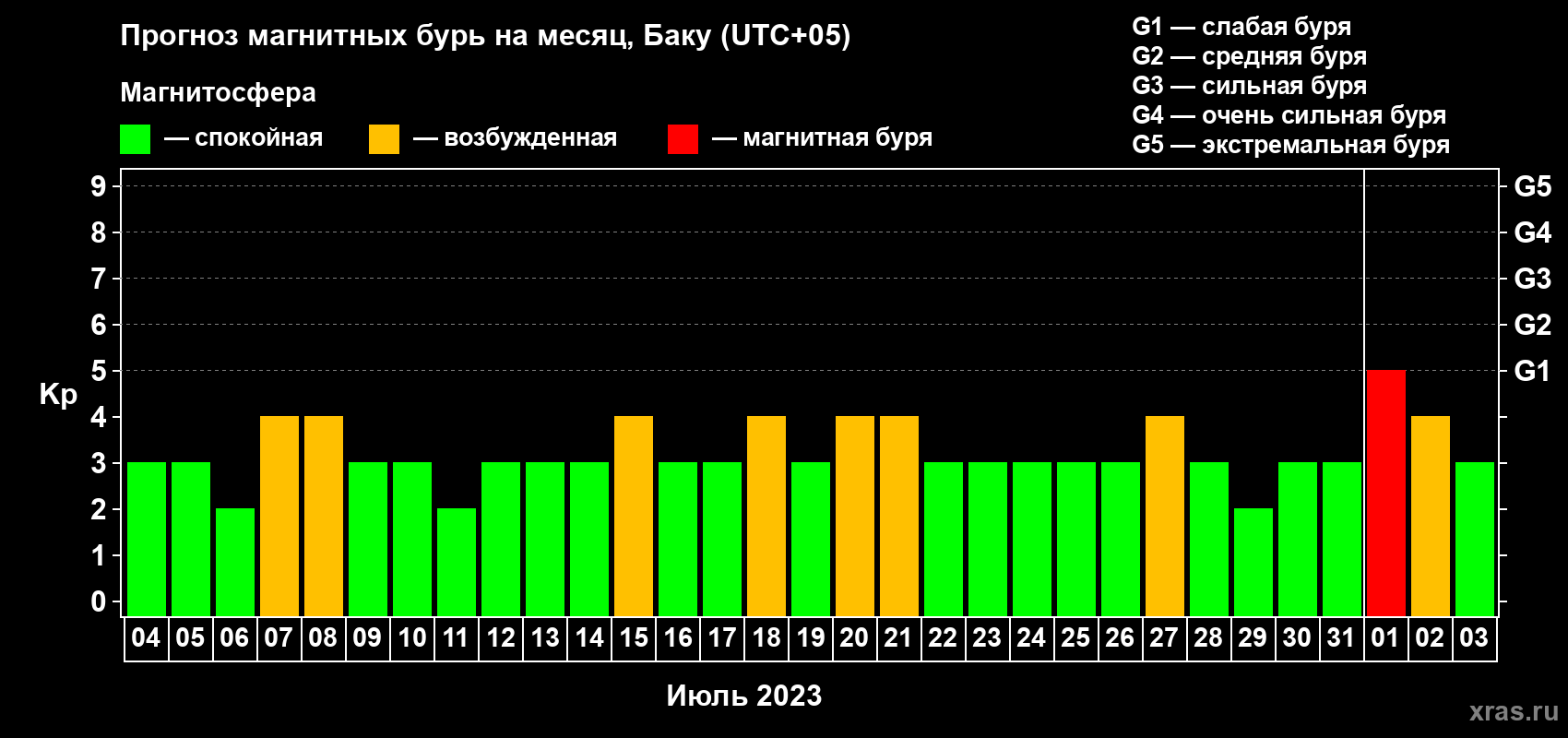 Прогноз магнитных бурь Баку — 4 июля 2023 года