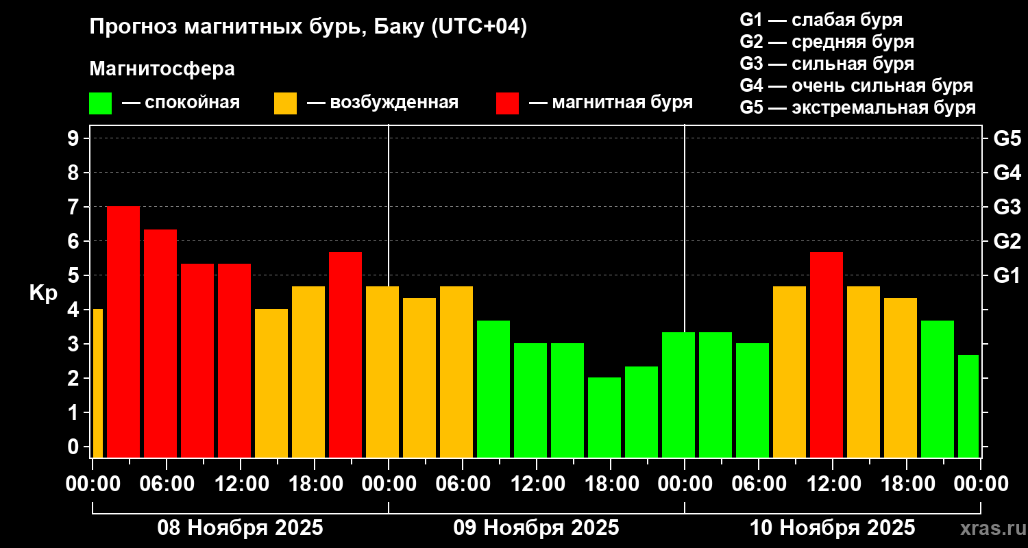 Прогноз магнитных бурь Баку — 8 ноября 2025 года
