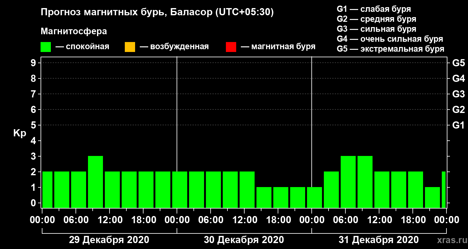 Прогноз магнитных бурь в Баласоре — 29 декабря 2020 года