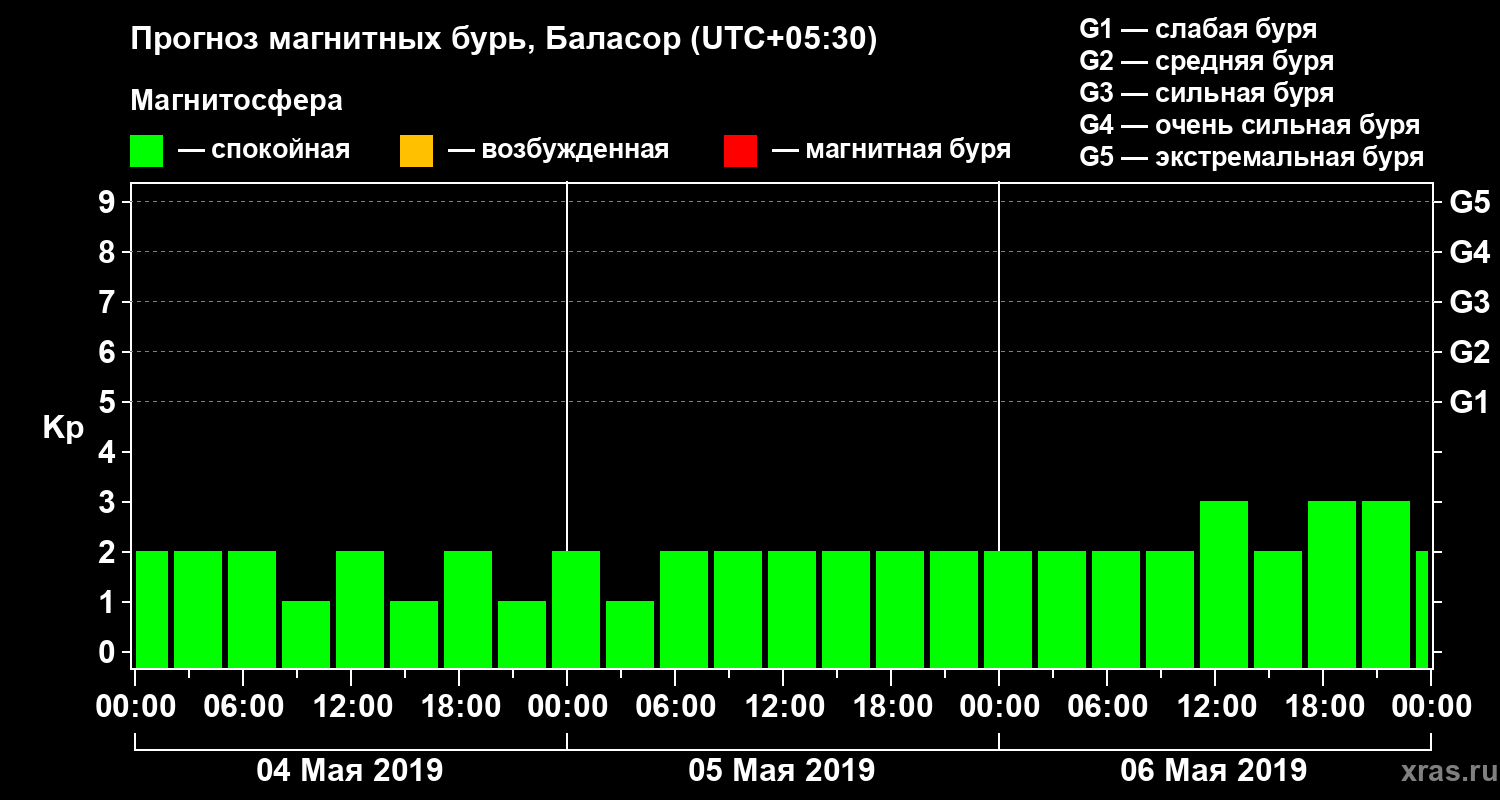 Прогноз магнитных бурь в Баласоре — 4 мая 2019 года