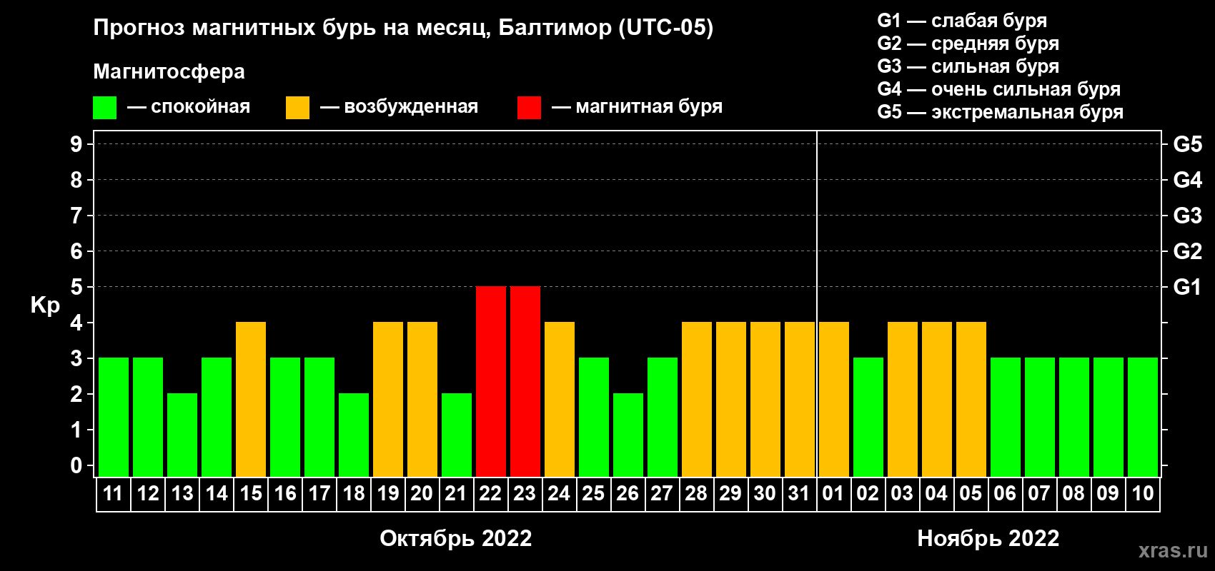 Прогноз магнитных бурь в Балтиморе на 11 октября 2022 года