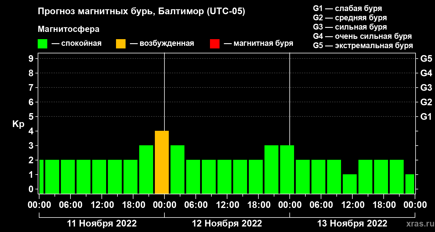 Прогноз магнитных бурь в Балтиморе — 11 ноября 2022 года
