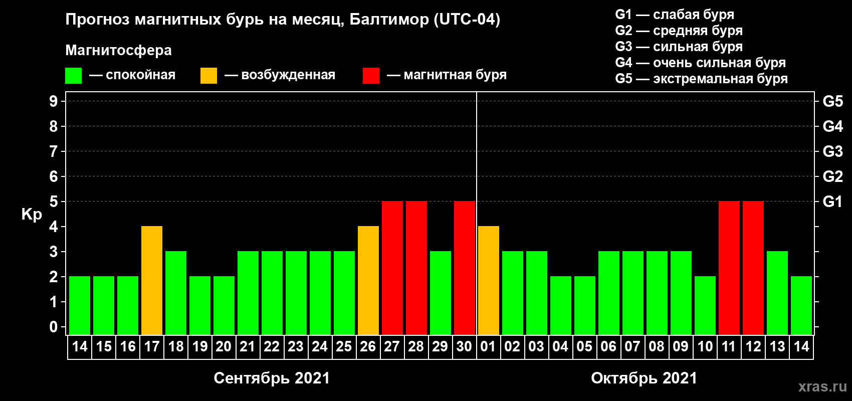 Прогноз магнитных бурь в Балтиморе — 14 сентября 2021 года