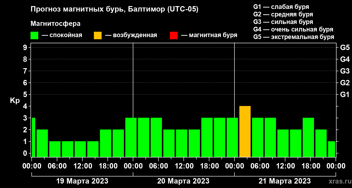 Прогноз магнитных бурь в Балтиморе — 19 марта 2023 года