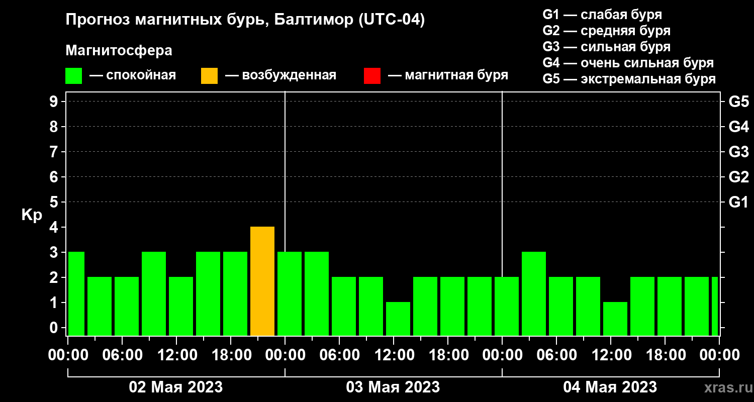 Прогноз магнитных бурь в Балтиморе — 2 мая 2023 года