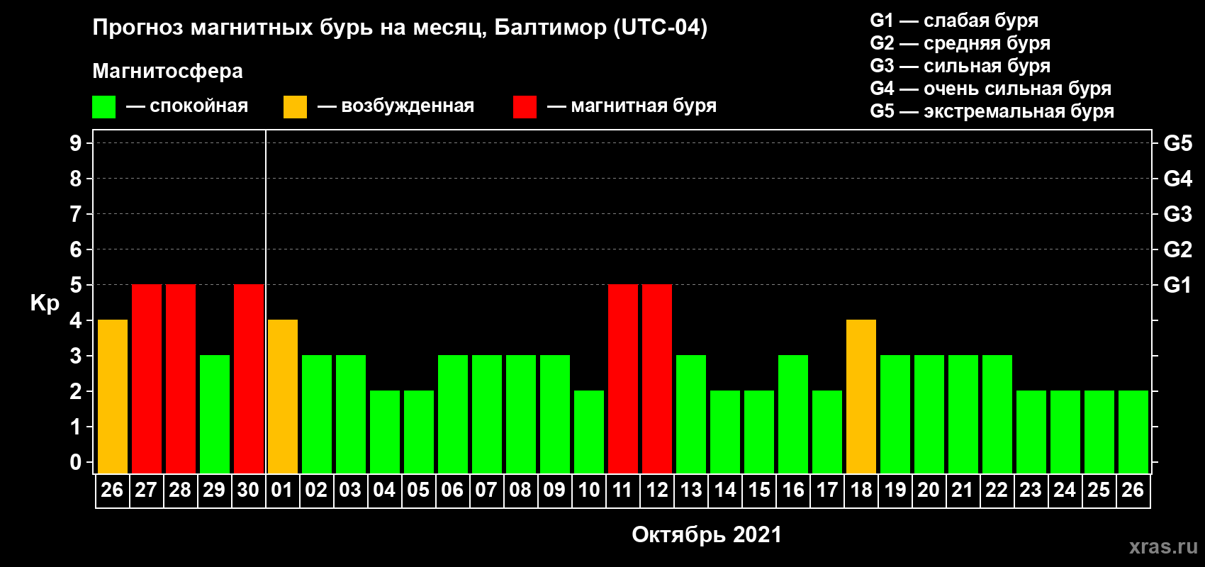 Прогноз магнитных бурь в Балтиморе — 26 сентября 2021 года