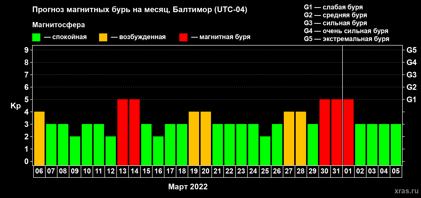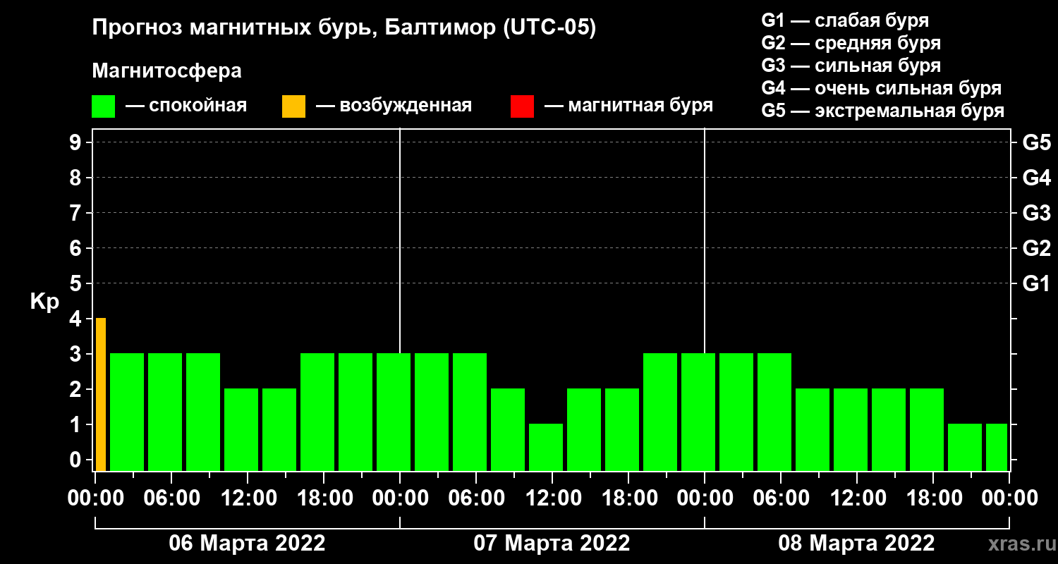 Прогноз магнитных бурь в Балтиморе — 6 марта 2022 года