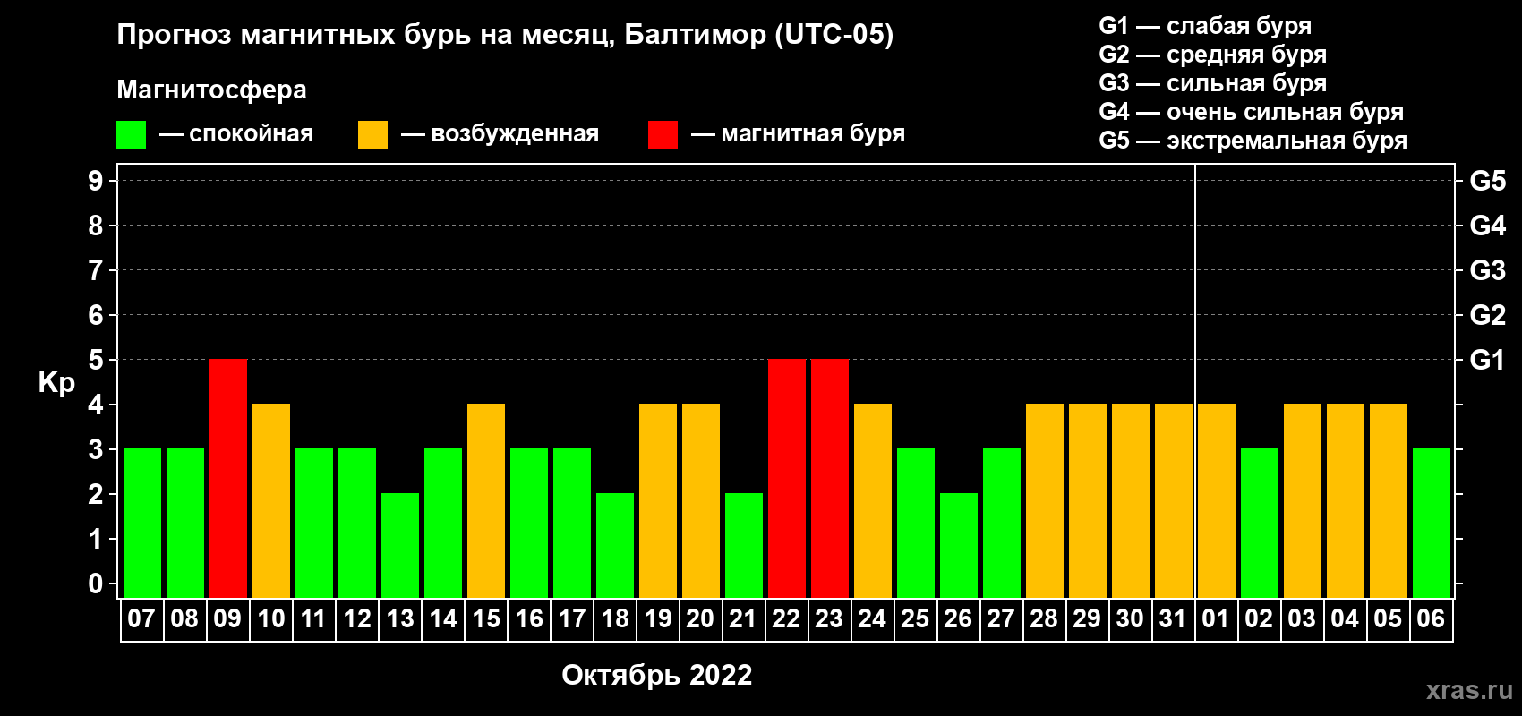 Прогноз магнитных бурь в Балтиморе — 7 октября 2022 года