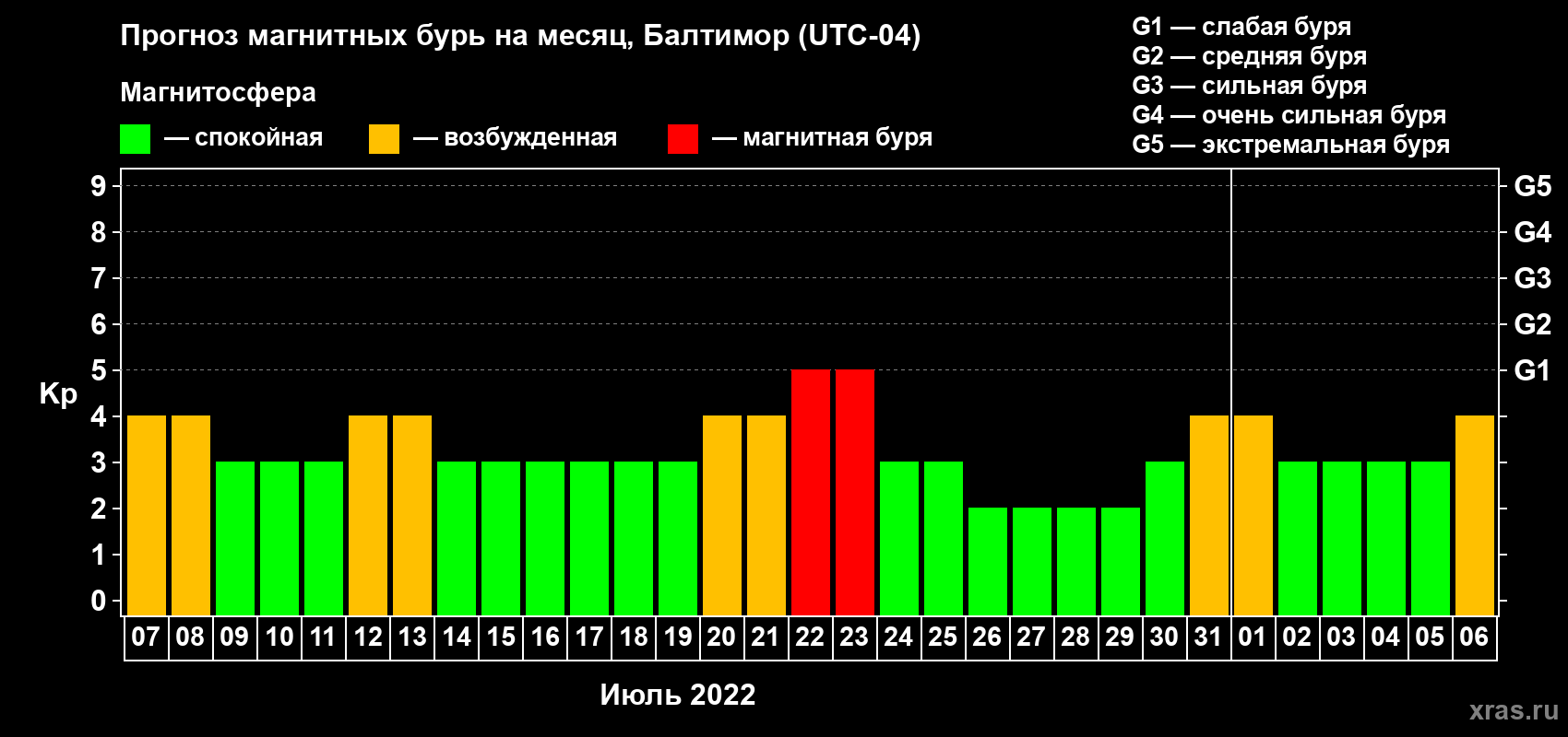 Прогноз магнитных бурь в Балтиморе на 7 июля 2022 года