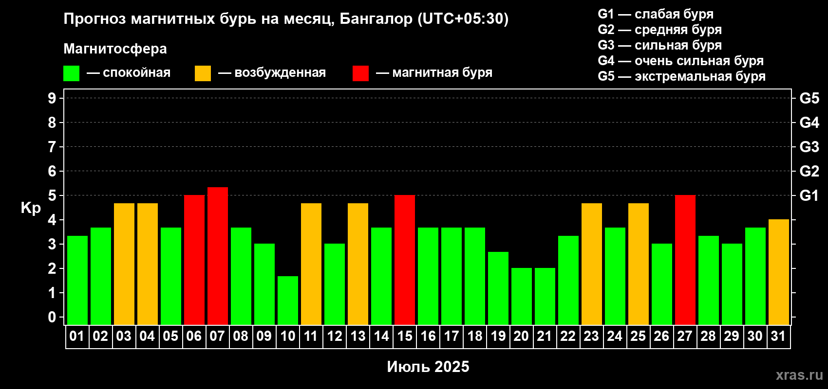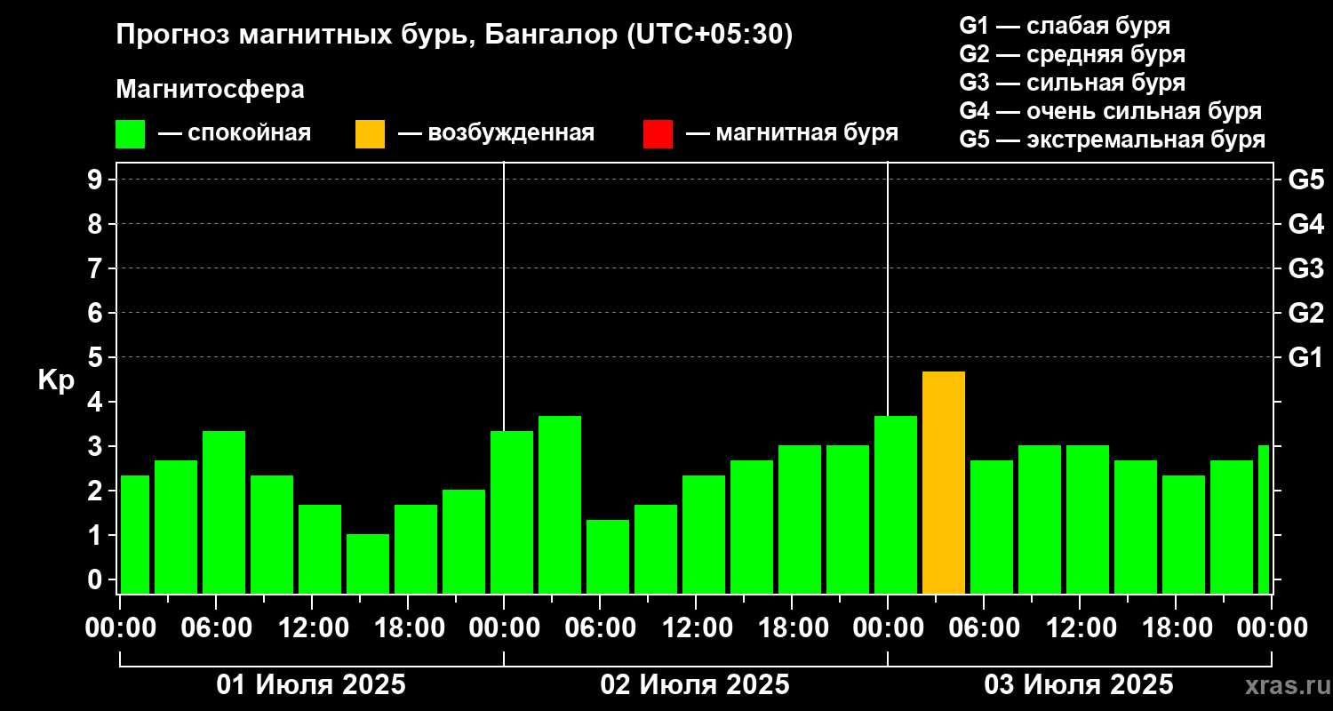 Прогноз магнитных бурь в Бангалоре — 1 июля 2025 года
