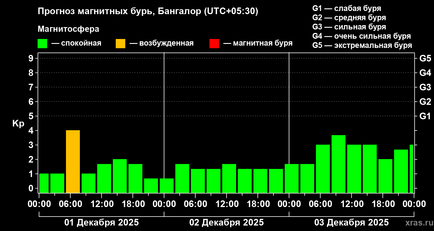 Прогноз магнитных бурь в Бангалоре — 1 декабря 2025 года