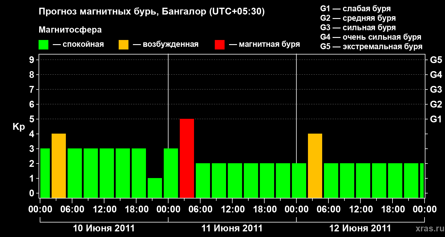 Прогноз магнитных бурь в Бангалоре — 10 июня 2011 года