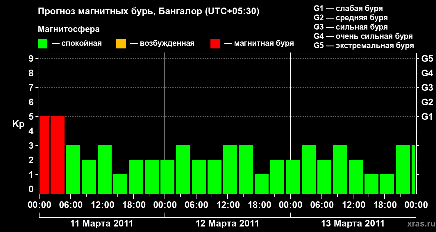 Прогноз магнитных бурь в Бангалоре — 11 марта 2011 года