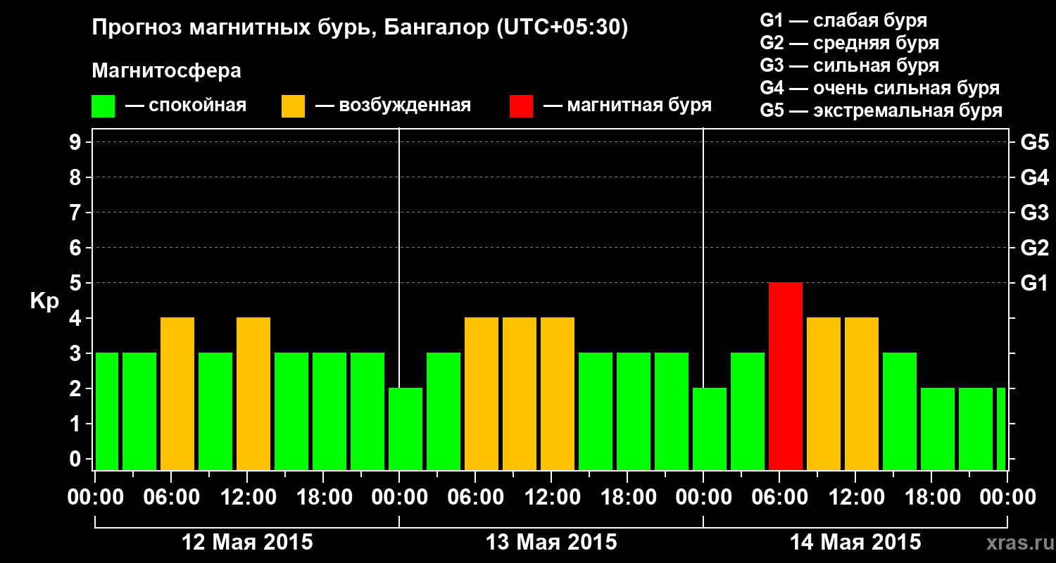Прогноз магнитных бурь в Бангалоре — 12 мая 2015 года