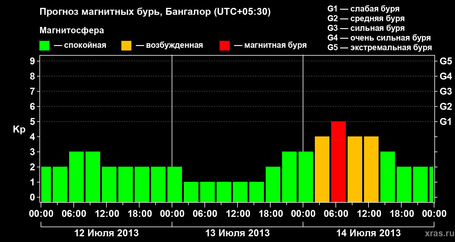 Прогноз магнитных бурь в Бангалоре — 12 июля 2013 года