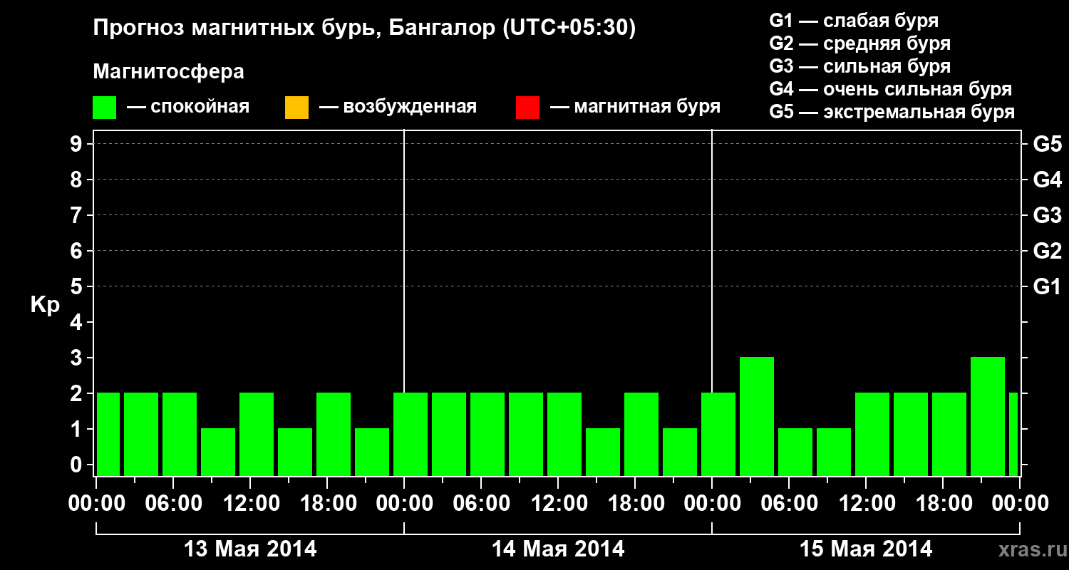Прогноз магнитных бурь в Бангалоре на 13 мая 2014 года