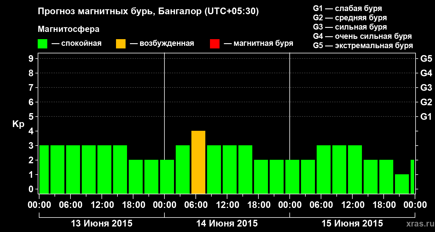 Прогноз магнитных бурь в Бангалоре — 13 июня 2015 года
