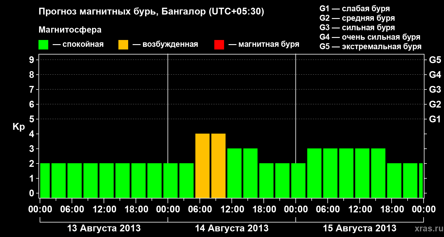 Прогноз магнитных бурь в Бангалоре на 13 августа 2013 года