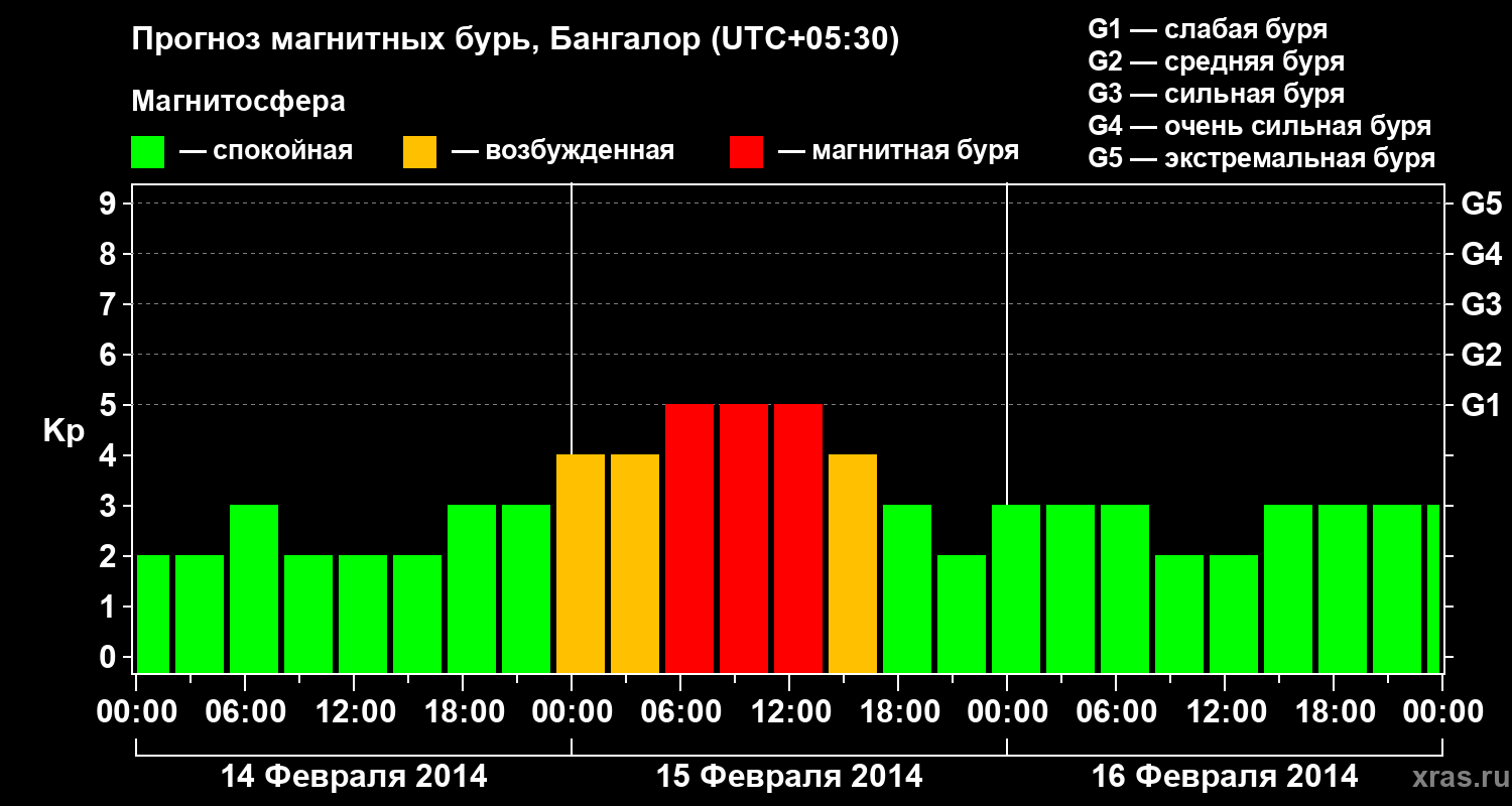 Прогноз магнитных бурь в Бангалоре — 14 февраля 2014 года