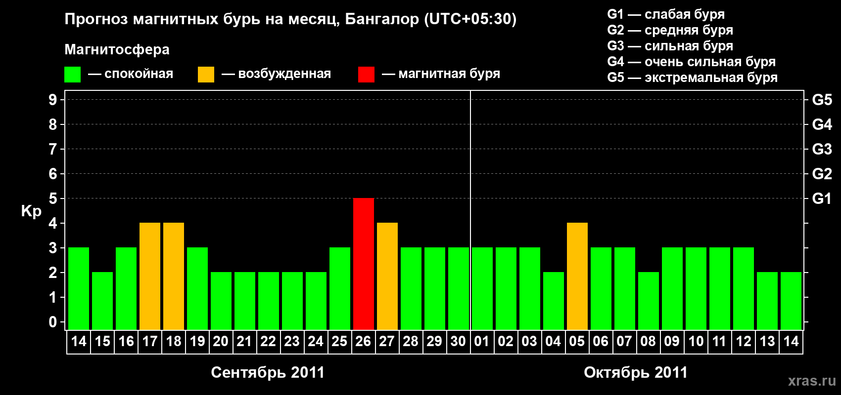 Прогноз магнитных бурь в Бангалоре — 14 сентября 2011 года