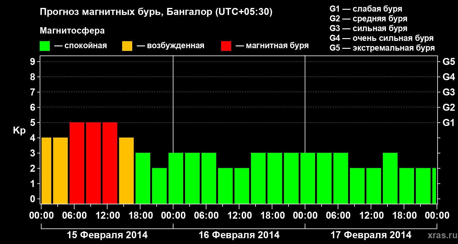 Прогноз магнитных бурь в Бангалоре — 15 февраля 2014 года