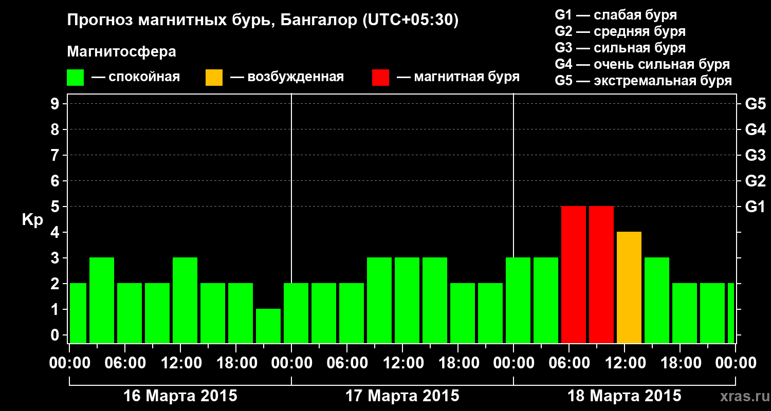 Прогноз магнитных бурь в Бангалоре — 16 марта 2015 года