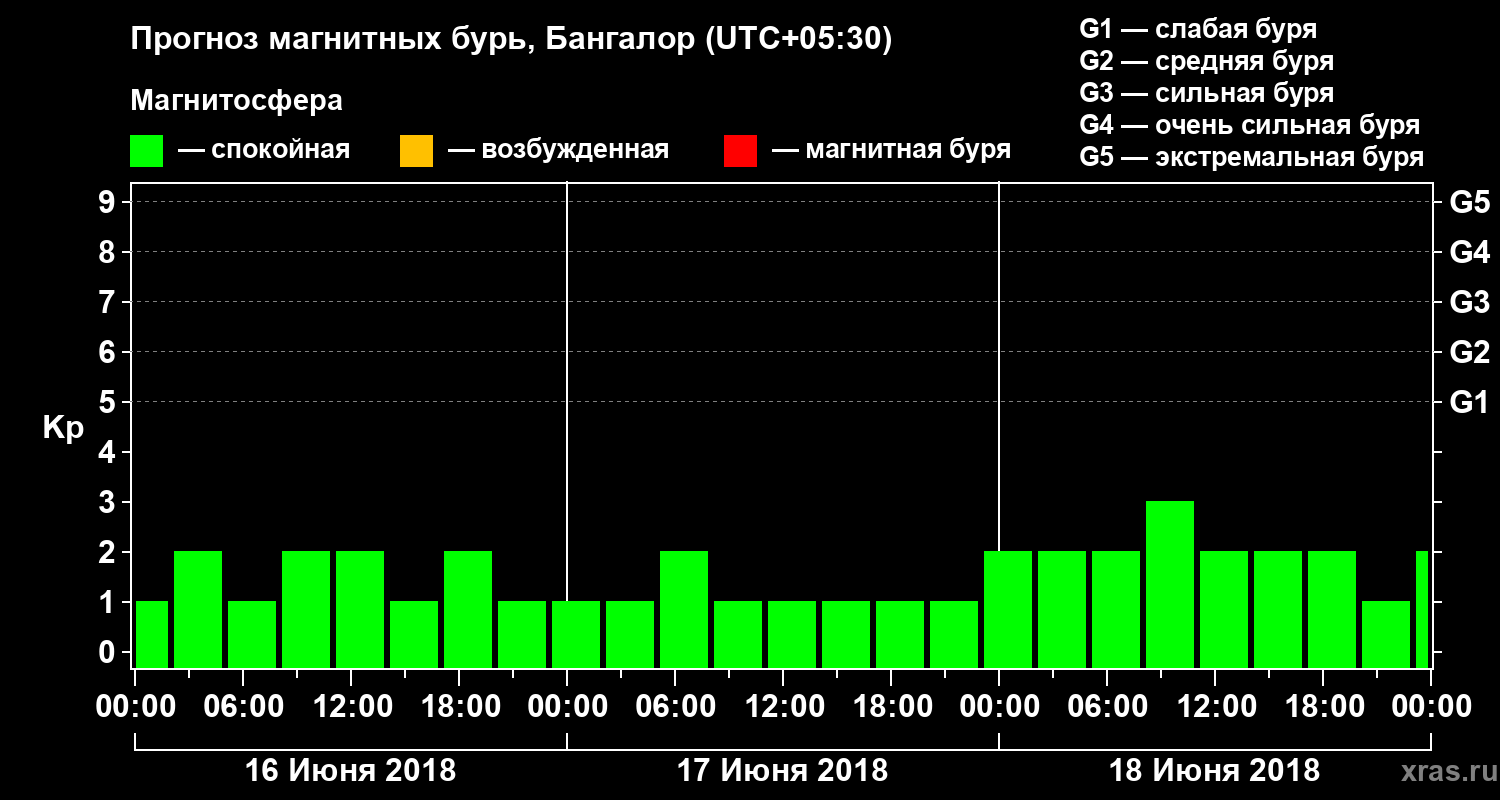 Прогноз магнитных бурь в Бангалоре — 16 июня 2018 года