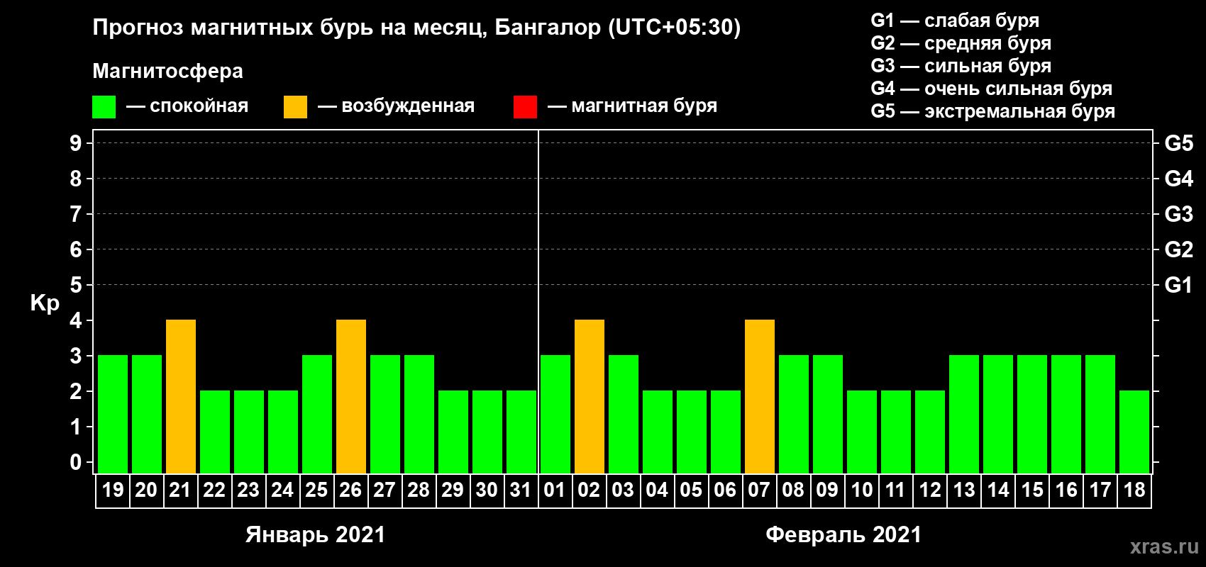 Прогноз магнитных бурь в Бангалоре — 19 января 2021 года