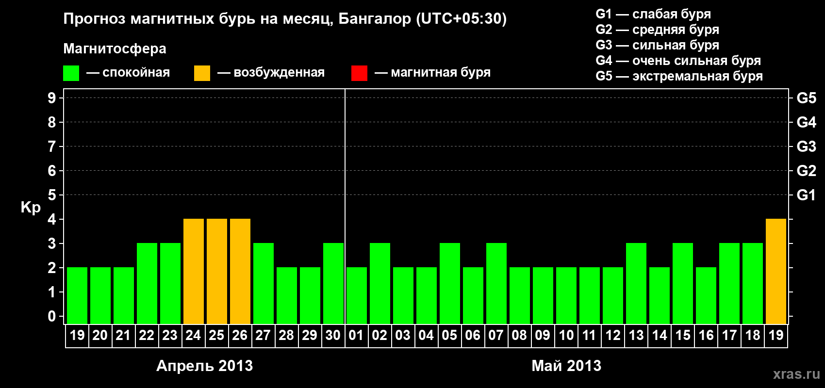 Прогноз магнитных бурь в Бангалоре — 19 апреля 2013 года