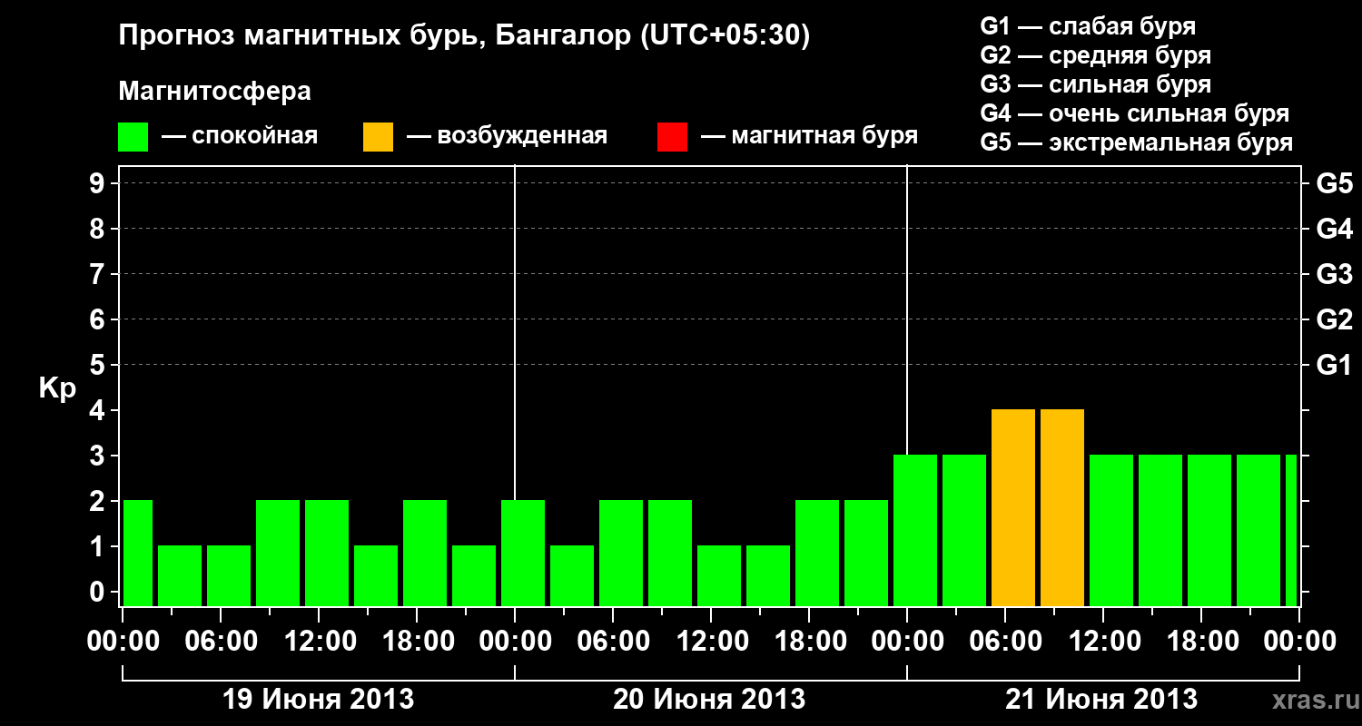 Прогноз магнитных бурь в Бангалоре — 19 июня 2013 года