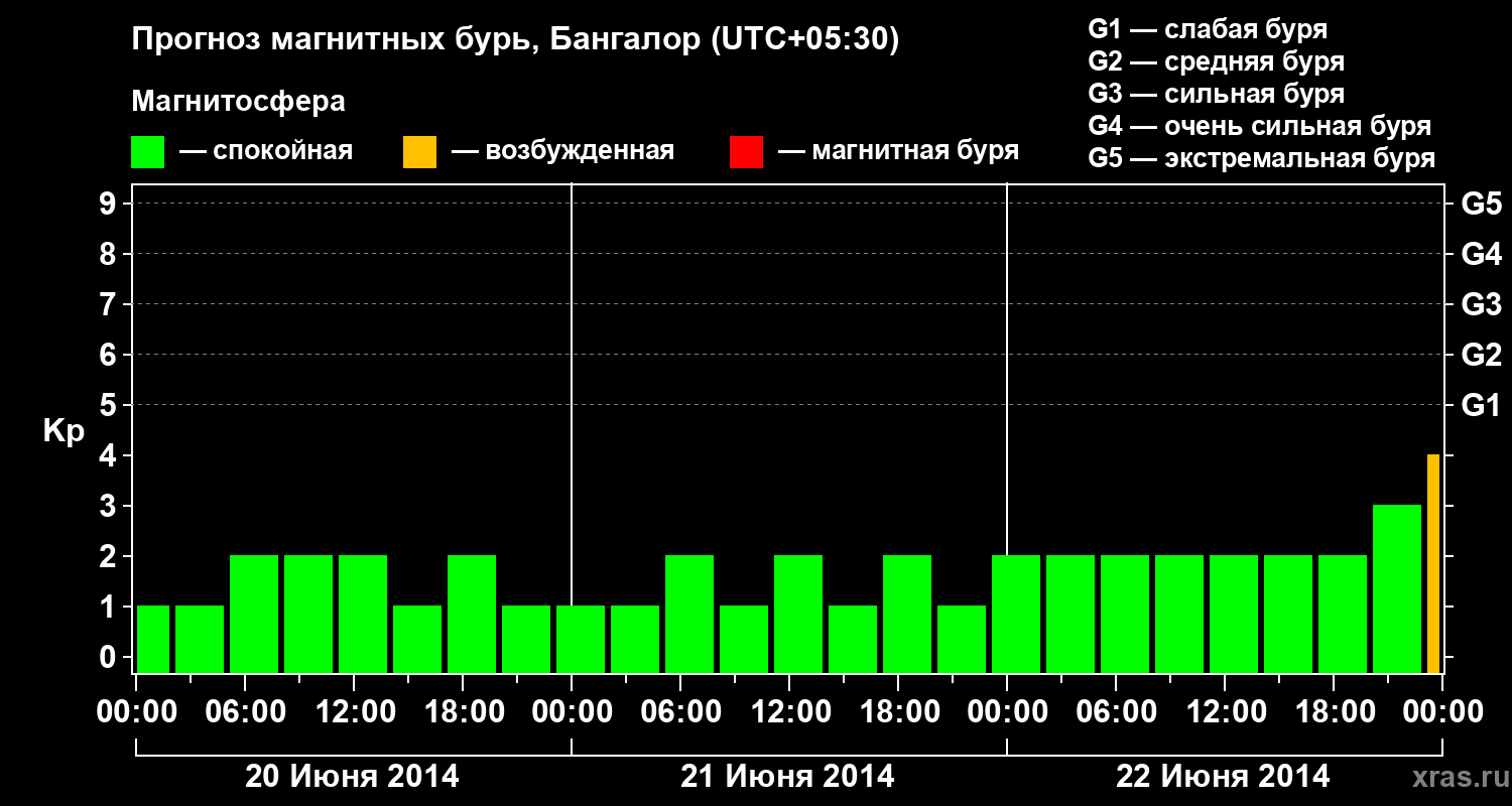 Прогноз магнитных бурь в Бангалоре — 20 июня 2014 года