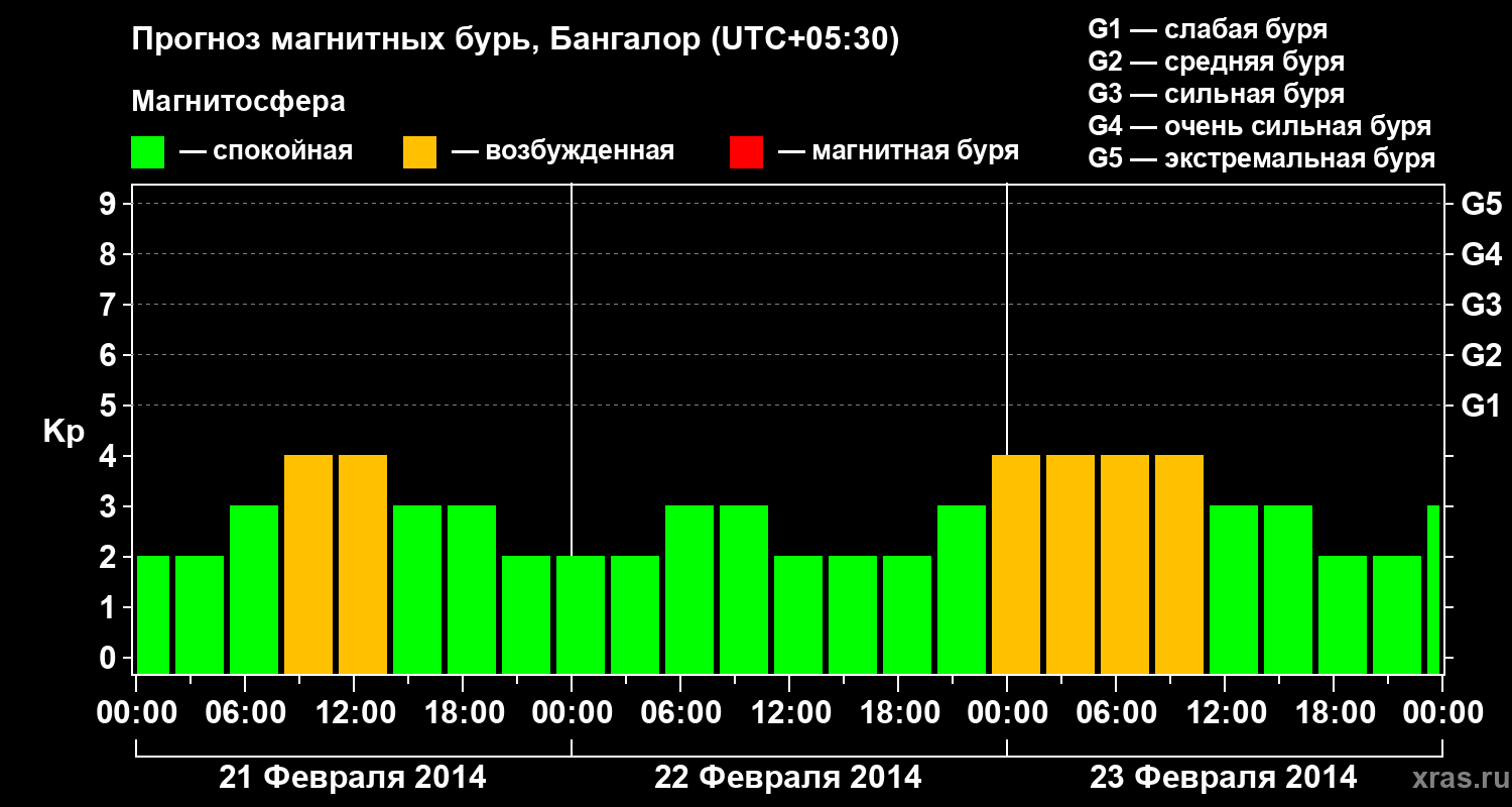 Прогноз магнитных бурь в Бангалоре — 21 февраля 2014 года
