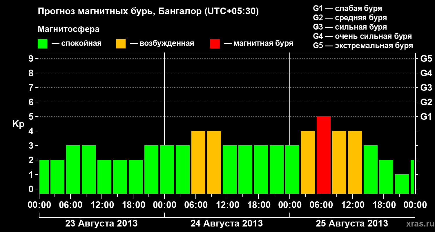 Прогноз магнитных бурь в Бангалоре — 23 августа 2013 года