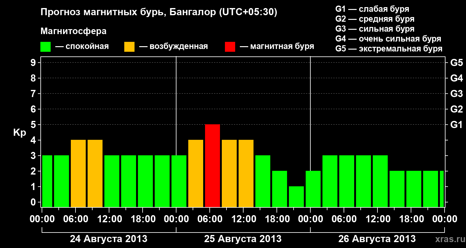 Прогноз магнитных бурь в Бангалоре — 24 августа 2013 года