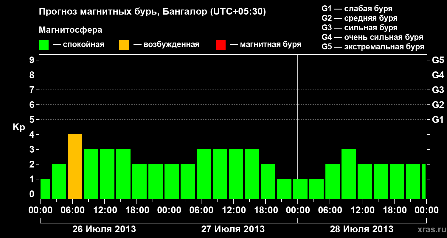 Прогноз магнитных бурь в Бангалоре — 26 июля 2013 года