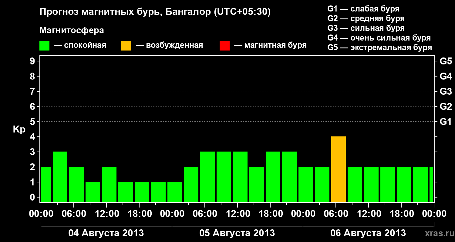 Прогноз магнитных бурь в Бангалоре — 4 августа 2013 года