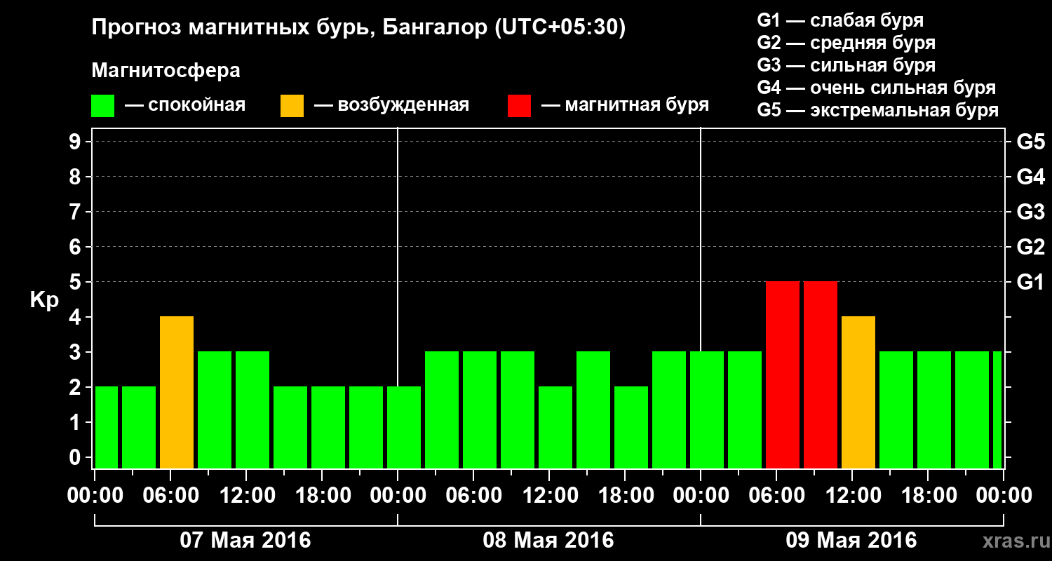 Прогноз магнитных бурь в Бангалоре — 7 мая 2016 года